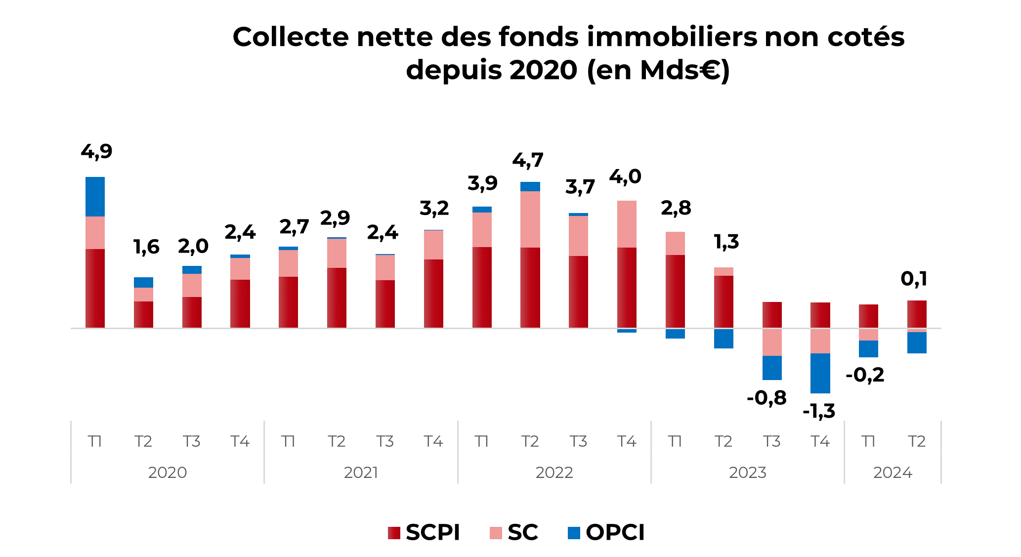 Collectes nettes des fonds immobiliers non cotés : des tendances disparates