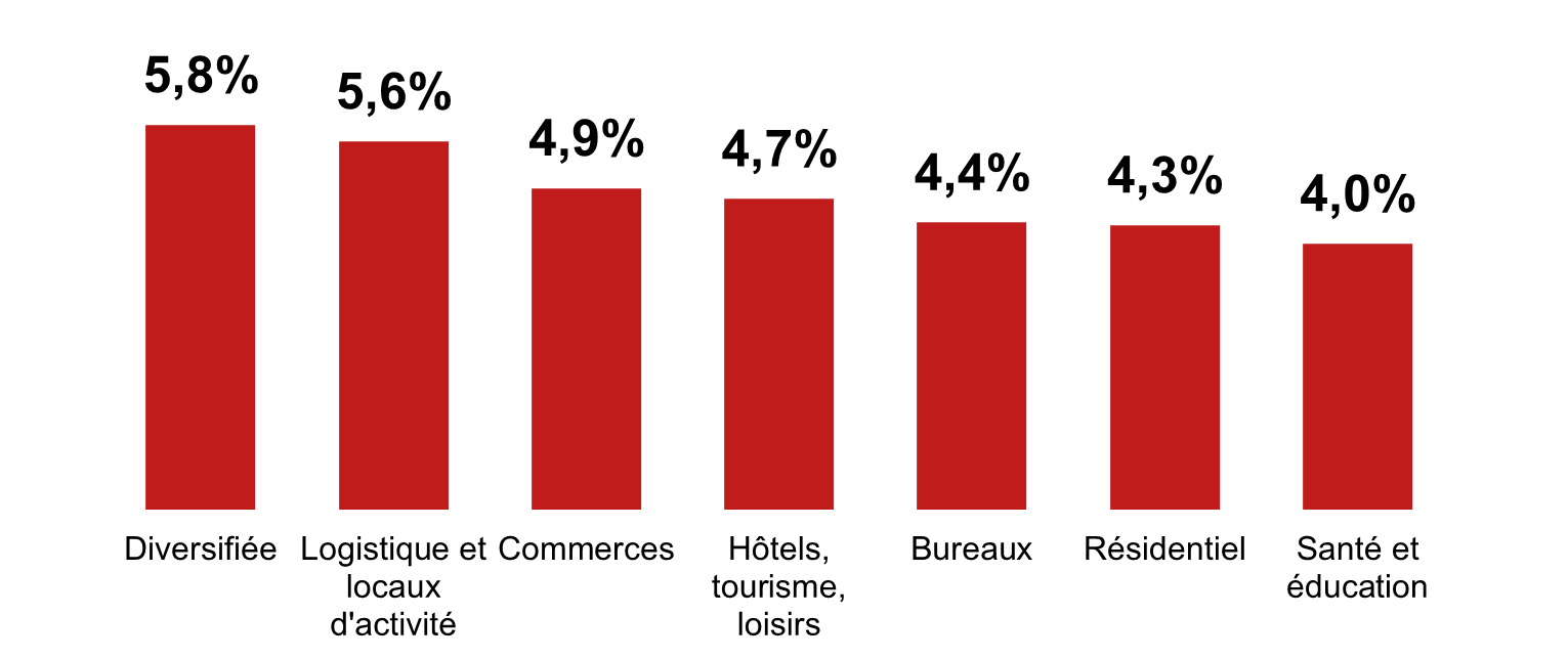 Par catégories de SCPI, les taux de distribution moyens de marché varient de 4,0% pour les SCPI « santé et éducation » à 5,8 % pour les SCPI « diversifiées ».